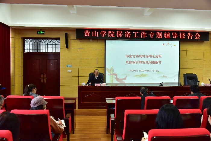 本次培训特邀黄山市委保密办副主任洪智生作专题辅导报告。洪智生围绕涉密文件资料办理全流程及保密管理常见问题,结合工作实际进行了系统讲解,为学校规范开展保密工作、堵塞管理漏洞提供了清晰路径与实操方法。